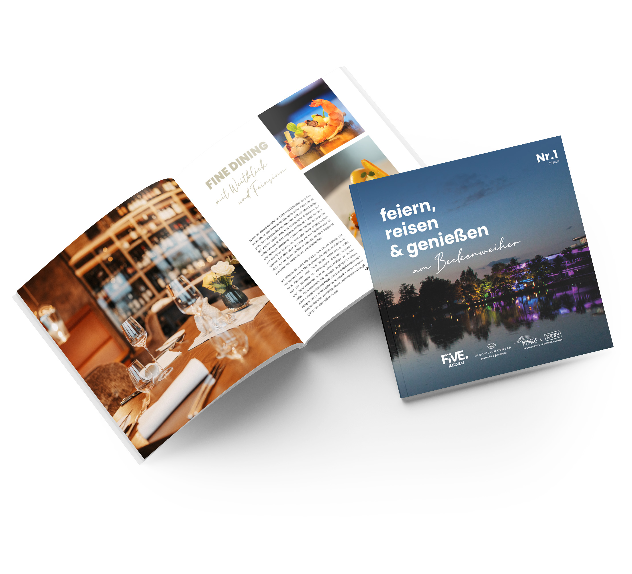 Eine exklusive Kooperation der am Beckenweiher in Weiherhammer ansässigen Unternehmen FivePoint Reisen, Restaurants Elements & NEWS und dem Innovision Center. Entdecken Sie spannende Einblicke, exklusive Geschichten und genussvolle Inspirationen – alles in einem Magazin.